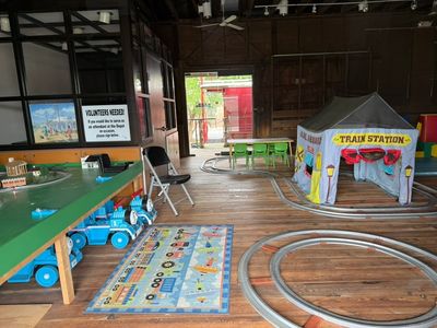 In this space we welcome children of all ages who desire to learn more about trains and how they work. There are opportunities to color, complete puzzles, build wooden train layouts, drive model trains, ride on motorized Thomas engines, explore coding with our Lego train sets, play train games on our Nintendo Switch gaming system and much more!